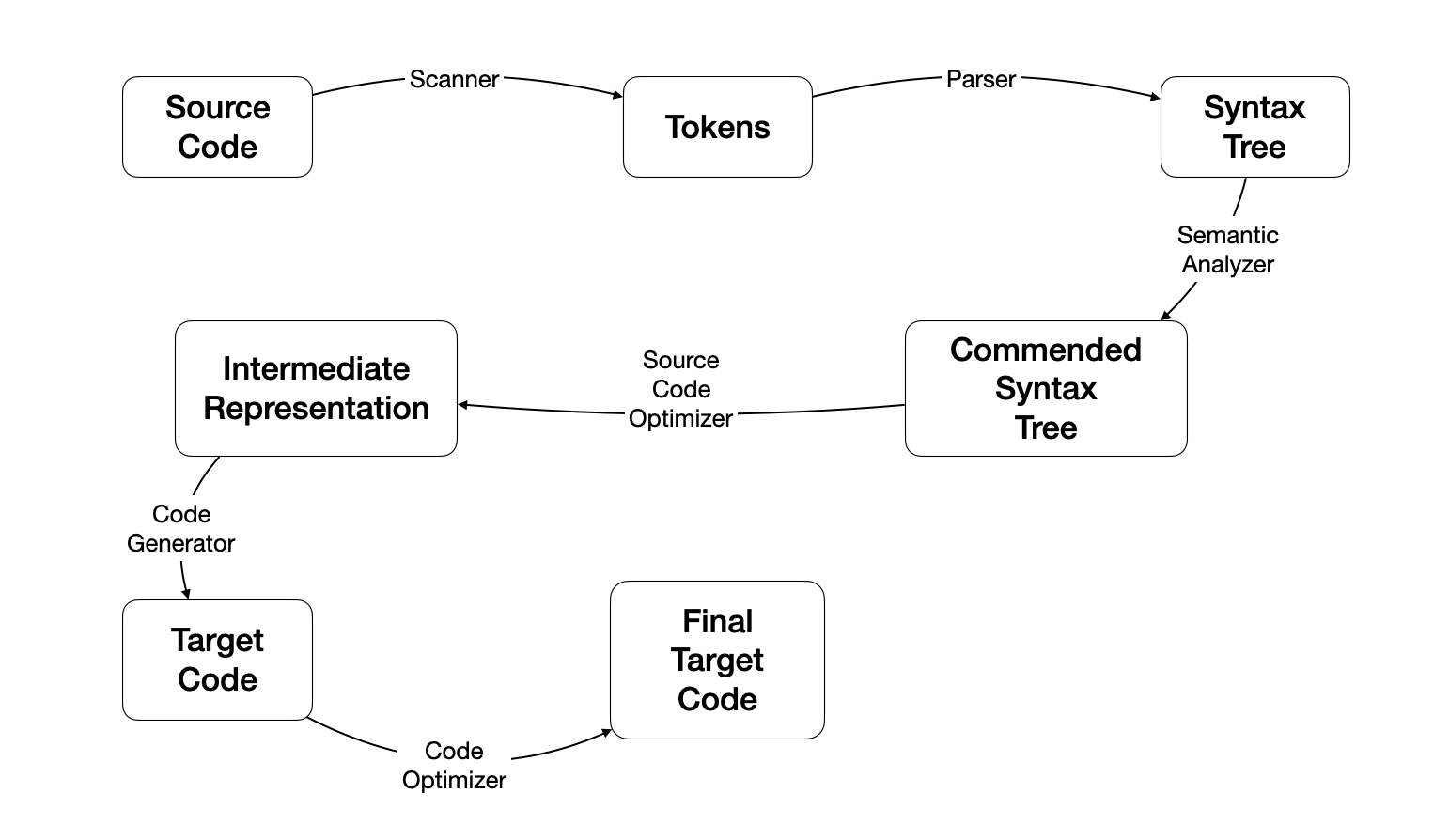 代码生成器(Code Generator)将中间代码转化为目标机器代码。 然后目标代码优化器(Target Code Generator)对目标代码进行优化,比如选择合适的寻址方式。